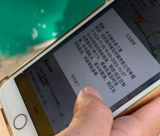 系统显示:“无法接单。”原因是小袁前一天有恶意取消订单行为,外卖账号要被封锁一天。