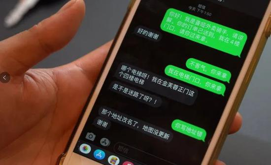 因为不方便打电话,小袁通常会用短信联系顾客。但短信容易石沉大海,很多时候小袁只能默默地将外卖放在前台或者门房,或是挂在铁门上。