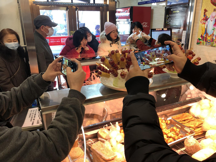 12月16日,玉华台经理孙朝荣告诉新京报记者,糖葫芦的大小是征求了顾客的意见量身定做的,“店里的师傅上午刚做好的近百个糖葫芦,不到5分钟就销售一空。”据新京报记者了解,除了玉华台,护国寺小吃总店、护国寺小吃裕桃园店、护国寺小吃阜桥店等都将在冬至前上线“迷你”糖葫芦。