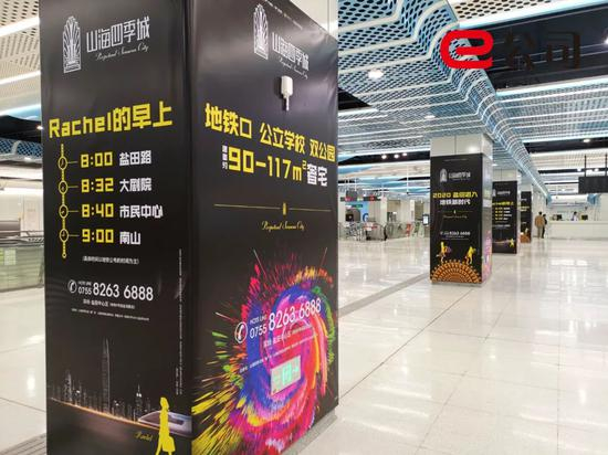 (8号线的地铁里已经张贴了山海四季城Ⅱ华府的楼盘广告。)