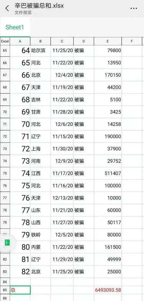 《财经》新媒体了解到,像王可一样的受害者在网络平台交流后,专门建立了微信群进行信息统计。截至12月25日,仅群里被骗人数就已经达82人,被骗金额合计高达649.31万元。