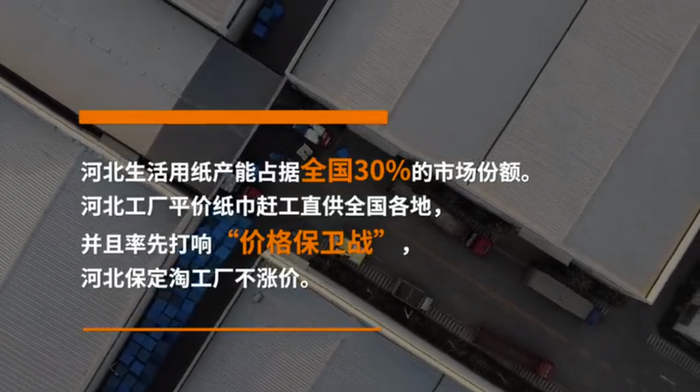 为了下沉市场供需平衡,河北工厂平价纸巾赶工直供,开启纸巾“保卫战”,保定淘工厂不涨价!据了解,河北保定占据了全国近30%的市场份额,一些企业线上规模逐年扩大,线上线下各占50%。