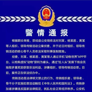 荥经县公安局称,针对动物世界APP的情况,以组织和非法领导传销罪立案侦查,并对组织、领导传销活动的核心骨干人员依法采取刑事强制措施。
