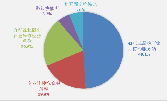 选择无固定维修地和路边快修店仅占5.8%和5.2%。