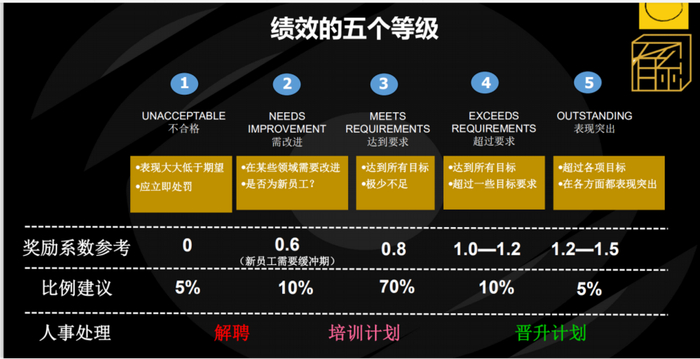 公司高速发展往前冲时,有可预期的绩效,浮动比例可以高一点,且可以拉开差距。