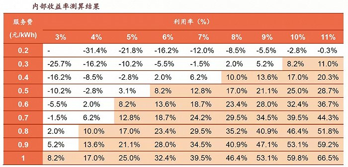 对公共直流桩的服务费和利用率进行IRR计算,在服务费0.5-0.6元/kWh的情况下,单桩利用率需要达到5%-6%以上,才可达到高于8%的内部收益率水平,跑赢货币贬值。