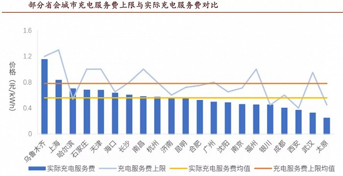 在行业激烈的竞争和用户对充电费用极为敏感的当前,充电服务价格短时间内是难以提升的。不少城市在制定充电桩管理条例时,会规定充电服务费上限,全国平均充电服务费上限为0.8 元/kWh。