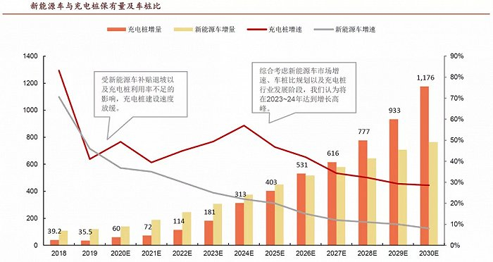 从新能源汽车产业大角度上看,预计新能源汽车2025年渗透率达到18%,2030年达到30%,那么我国新能源汽车保有量将在2025年达到1600万辆,2030年达到5200万辆。要在未来达到较为合理的车桩比1∶1,充电桩数量也差不多是这个数字,发展潜力极强。
