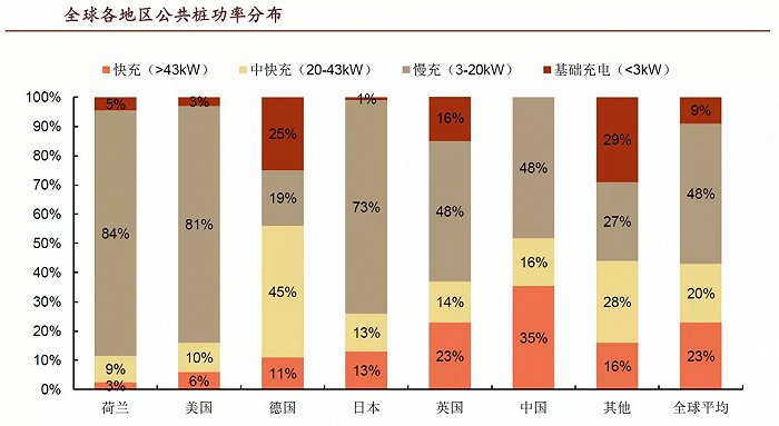 前文也有提过,我国与欧美国情不同,欧美地区很多家庭独栋居住、停车位充足,私人桩建设相对方便,体系成熟,因此对公共桩的需求较弱,私人桩的比例则较高,电动车与公共桩的比例也较高。