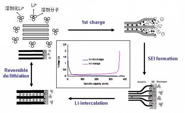 负极上与电解液会反应形成一层钝化层,这层膜紧贴负极表面,Li离子可以自由地嵌入和脱出,因此这层钝化膜被称为“固体电解质界面膜”,即SEI膜。SEI膜具有有机溶剂不溶性,在有机电解质溶液中能稳定存在,并且可以阻止溶剂分子通过,避免了因溶剂分子共嵌入对电极材料造成的破坏,以此大大提高了电极的循环性能和使用寿命。