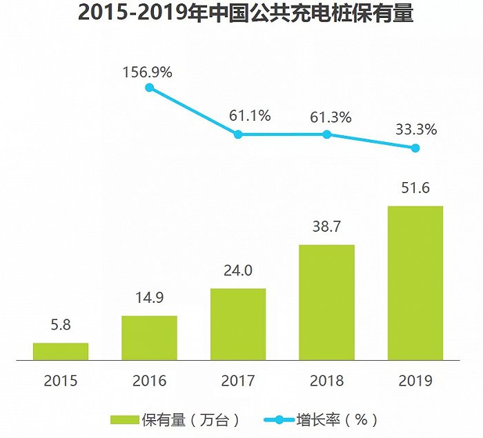 在近几年重点建设公共桩的趋势下,经历了15、16年的超前投建、盲目发展,投建模式自17年来逐渐成熟,增长率势头已经放缓,进入良性的战略调整期,19年不仅增长率大幅下降到33.3%,绝对增量上12.9万台,也低于18年的14.7万台增量。