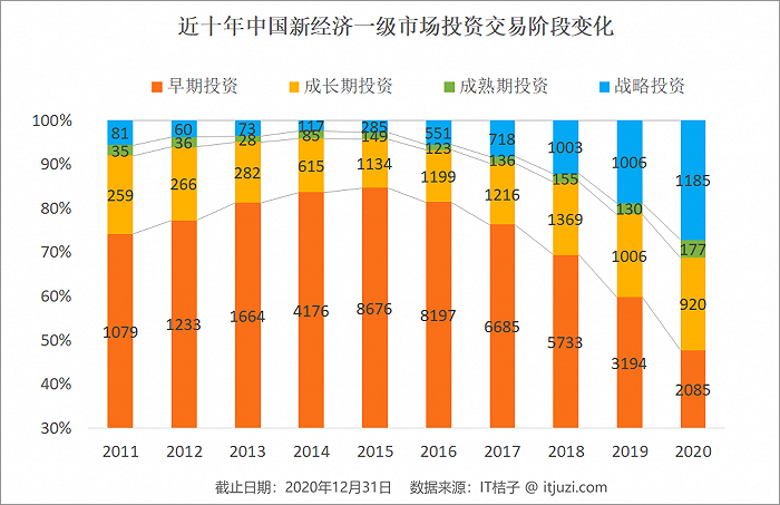 新经济步入成熟期,近十年早期投资占比首次低于 50%