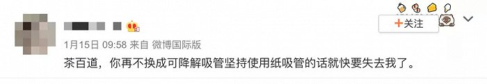 茶百道的纸吸管,也被很多忠实粉丝吐槽,求“快点换了吧”: