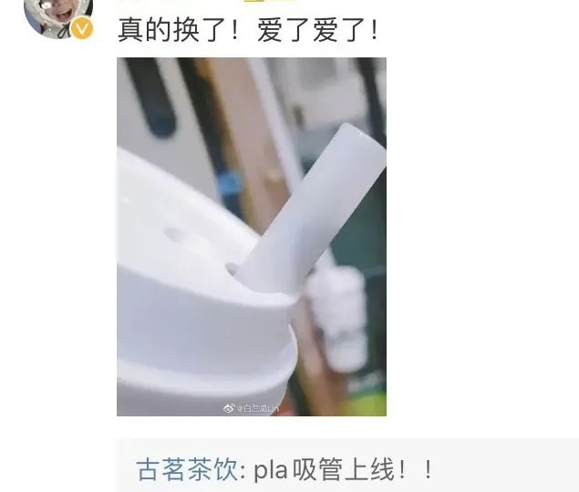 茶百道官宣换PLA吸管前几天,1月14日,古茗在微博上也发了一个更换吸管的视频: