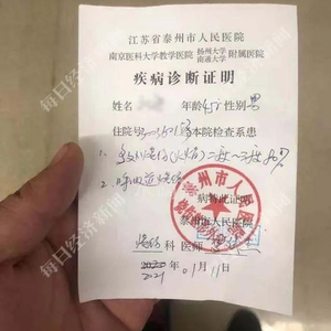 医院出具的诊断证明知情人士供图