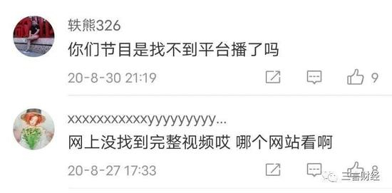 网友在评论区询问“从哪里能观看节目完整版”,“你们节目是找不到平台播了吗?”均没有得到回复。