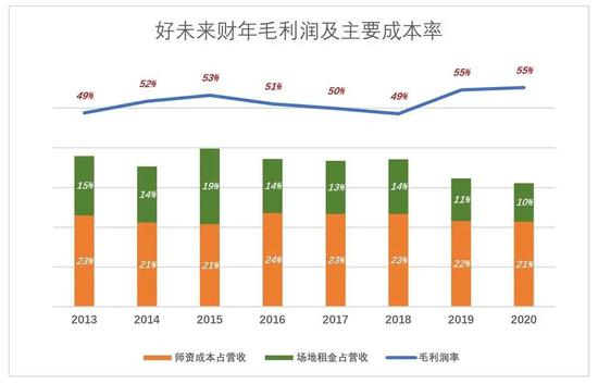 好未来线下收入占比远超50%,毛利润率在55%左右,与新东方如出一辙。采取纯线上模式的跟谁学,毛利润率超过70%。