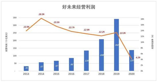 与携程相似,好未来血管里流淌的也是“赢利的基因”,经营利润率多年保持在10%以上。2019财年经营利润达3.42亿美元、利润率13.3%。不料2020年2月29日结束的财年,经营利润降至1.37亿美元、利润率仅为4.2%。
