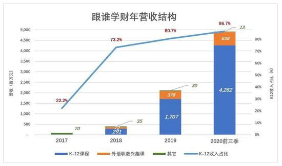 2018年转型初见成效,2019年实现跨越式增长。其中K12大班收入17亿,同比增长487%,占营收的80.7%。