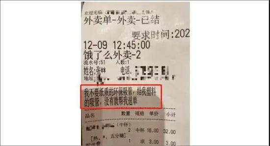 有饮品店甚至收到用户外卖备注:“我不要纸质的环保吸管,给我塑料的吸管,没有就帮我退单。”有奶茶店负责人表示,自打开始换纸吸管,客诉明显多了,现在10%-20%的客诉都是围绕纸吸管的。