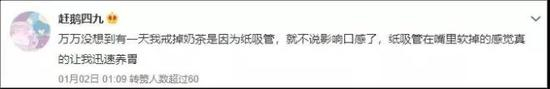 “因为纸吸管,我已经好几天没有喝奶茶了。”奶茶狂热爱好者欣欣说道。“我喜欢咬吸管,自从奶茶变成纸吸管,感觉像在嚼卫生纸,一下子就不怎么想喝奶茶了。”
