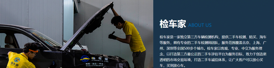 记者发现,检车家公司在其官网上自称“检车家是国内领先的独立第三方车辆检测评估机构”“面向全国各地提供二手车检测,鉴定,评估,出具检测报告,委托检测鉴定事故车,提供二手车购前检测服务,淘车服务”。