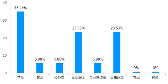 对受访者的背景进行调查发现,18—25岁的燃油车车主中,学生占35.29%,企业职工和自由职业者相同,均占23.53%,教师、公务员以及企业管理者等占比较低;而在26—35岁年龄段的燃油车车主中,没有学生的存在,企业职工最多,占比47.06% ,公务员和自由职业者相同,均占17.65%,教师、企业管理者等职业的占比很小。