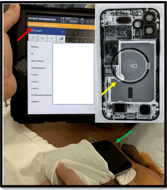 此前,国外医学学术期刊《Heart Rhythm》发表一项研究,三名医生测试发现,将一部iPhone 12放在患者植入ICD的左胸区后,ICD立即进入“暂停”状态。