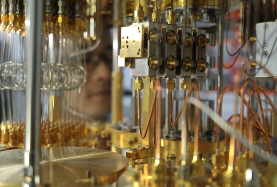 (达摩院量子实验室,研究人员正在调试量子计算设备)