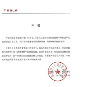 2月9日晚间,特斯拉通过官方微博发布声明称:“诚恳接受政府部门的指导,并深刻反思公司在经营过程中存在的不足,全面加强自检自查。”并表示,目前该公司正在政府主管部门的指导下,强化内部工作机制和流程,全方位加强内部管理。