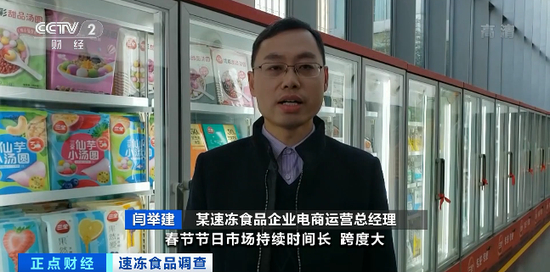 某速冻食品企业电商运营总经理 闫举建:春节节日市场持续时间长,跨度大。速冻食品的消费需求高涨,产品销量增长了50%。