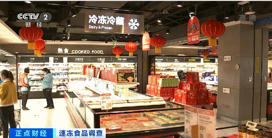 临近春节,记者在北京一家超市发现,在速冻食品区域,不少消费者正在精挑细选准备带回家的产品。