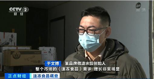 某品牌微波水饺创始人于文博:开年以后,整个市场的速冻食品需求,增长非常明显。消费的年轻人,因为确实工作非常繁忙,需要在家里可以快速享受美食。对好吃的、方便的产品,消费者是愿意买单的。