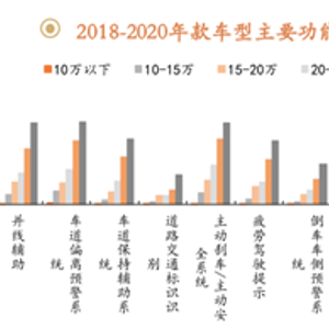 新能源汽车通过高配置来降低用户价格敏感性。数据显示,除了车身稳定系统和巡航系统等已经非常成熟且在燃油车大范围应用的功能之外,其他近些年兴起的ADAS功能的新车配置率在新能源车上几乎都高于燃油车。随着车辆价格的提升,智能装备如车联网、激光雷达等功能的配备率呈明显上升趋势。在电动车时代,由于电动车售价相对传统能源汽车较高,智能装备搭载率也更高。以自动驾驶技术中的主动刹车/主动安全系统为例,在售价为50~100万元的车型中,配置率达85%,而在10~15万的车型中配置率仅有20%不到。