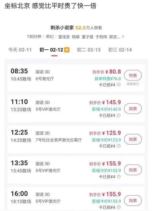 春节档贵且难看?华谊兄弟电影汇680元/张 三线城市一天比一天贵