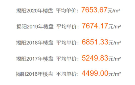 但浏览安居客近五年的数据,揭阳普通一手房的均价涨幅还是比较明显的,相比2016年,上涨了70%左右。