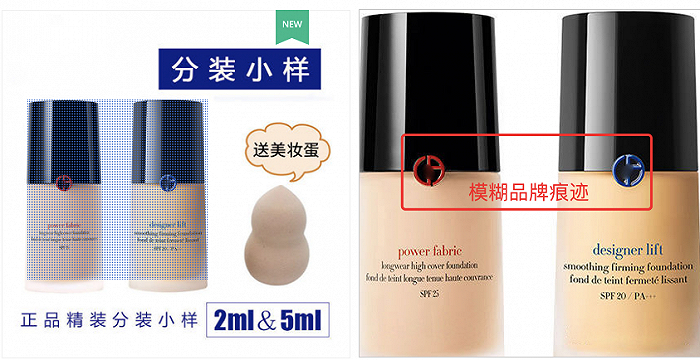 从其页面上可看出,该款产品确为阿玛尼品牌粉底,店家已将其logo和名称抹去。而该产品3月1日之前的评论中也可以看出,该店也确实曾经在做阿玛尼分装生意。