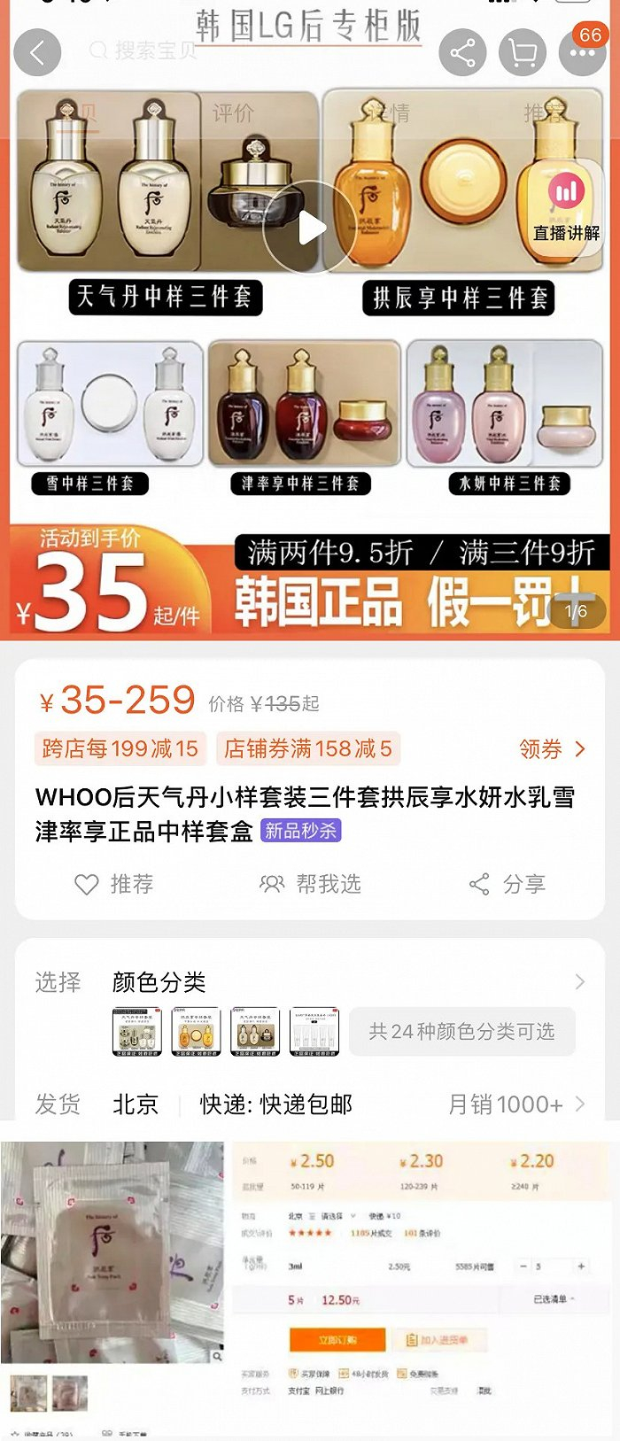 按价格对比单位容量换算,以某品牌的一款面霜为例,其官网正品售价为740元/50ml,但其15ml的小样在网上售价仅为40-60元,几乎是正品的2-3折扣。