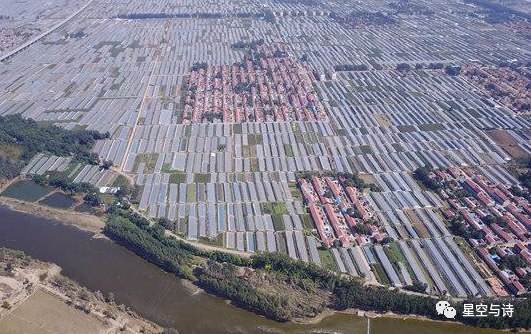 这张图的拍摄地点,是山东寿光,一望无际的塑料大棚,可以一年四季生产蔬菜。