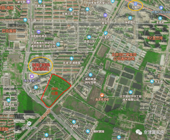 该宗地距离地铁八通线九棵树站仅1.5公里,紧邻东直门医院(通州院区), 马路对面是东郎产业园,吃喝玩乐的设施都有,周边配套成熟。具体位置如下: