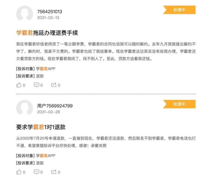 黑猫投诉平台有关学霸君投诉