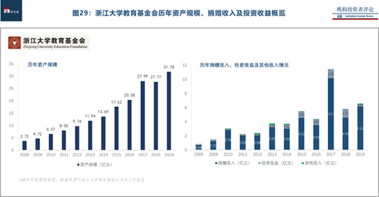 2006年7月,浙江大学教育基金会成立,原始基金数额5000万元,来源于社会捐赠。自2008年起,浙江大学教育基金会规模逐年增长,比较稳健。截至2019年12月31日,资产规模31.78亿元。