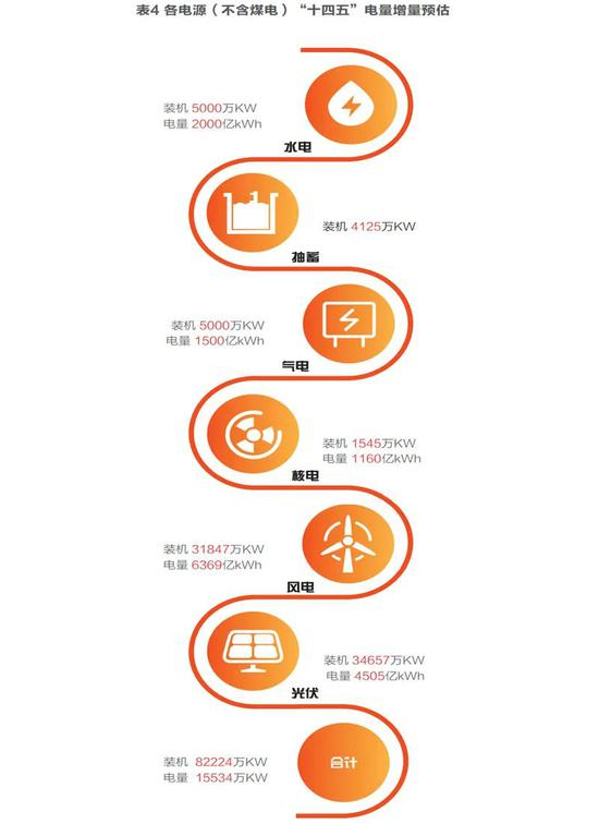 如表5所示,“十四五”新增电量供应15534亿千瓦时,低于4%增速对应的用电量增量需求。