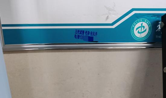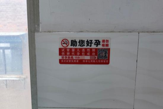 郑大一附院生殖中心内,地下辅助生殖机构张贴的小广告。新京报记者 吴小飞 摄
