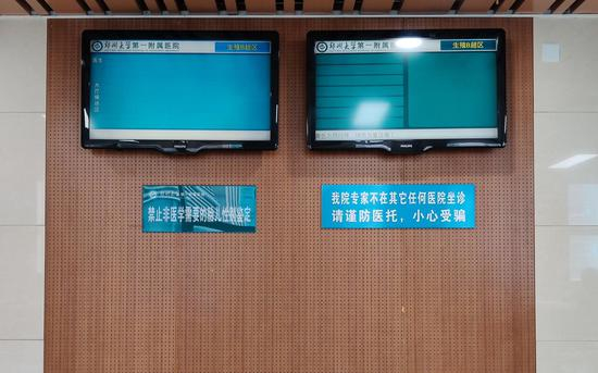 郑大一附院生殖中心内张贴的警示公告。新京报记者 吴小飞 摄