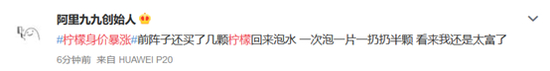 对此,有网友评论称,前阵子还买了几颗柠檬回来泡水,一次泡一片一扔扔半颗,看来我还是太富了。