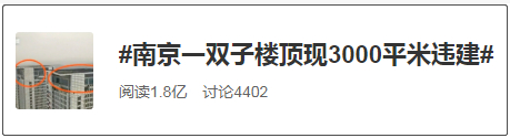 近日,有媒体报道#南京一双子楼顶现3000平米违建#引发网友关注。