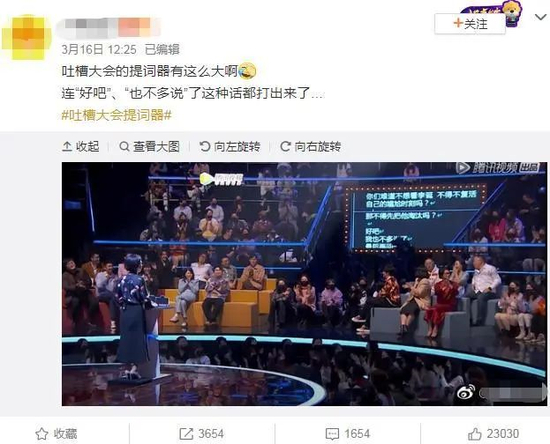 在前几季节目里,也曾有网友发现,一些明星嘉宾上去吐槽,眼神却总是朝提词器飘去,最后效果不佳。引起他们不满的是,如果嘉宾连词都不想背,那钱是不是太好赚了?