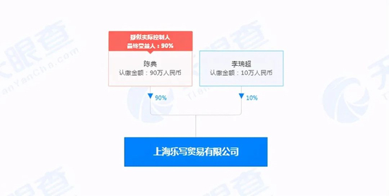 上海乐写贸易有限公司成立于2018年11月,注册资本为100万人民币,法定代表人为陈典(黑尾酱),经营范围含服装服饰及面辅料、鞋帽、箱包等日用百货销售;电子商务;从事货物进出口及技术进出口业务等。股东信息显示,该公司由陈典(黑尾酱)和李瑞超(李诞)共同持股,分别持股90%、10%。