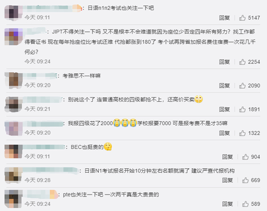 不少网友在相关微博下方留言呼吁关注其他等级考试的高价考位费问题。